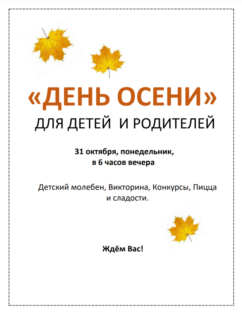 The program will include: children’s moleben (prayer), games, pizza, and positive spirits.